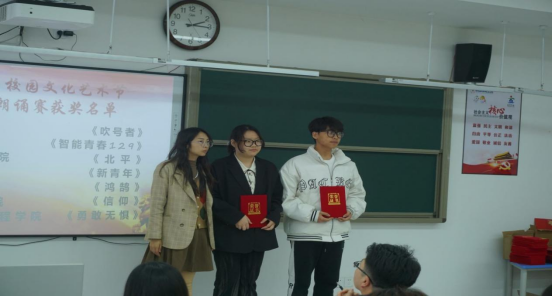 比赛中,经济管理学院参赛队伍带来的作品《吹号者》荣获“一等奖”;智能制造学院参赛队伍带来的作品《智能青春129》和数字经济学院参赛队伍带来的作品《北平》荣获“二等奖;机械工程学院参赛队伍带来的作品《新青年》、川酒学院参赛队伍带来的作品《鸿鹄》、应用化工学院参赛队伍带来的作品《信仰》、药品与环境工程学院参赛队伍带来的作品《勇敢无惧》荣获“三等奖”。