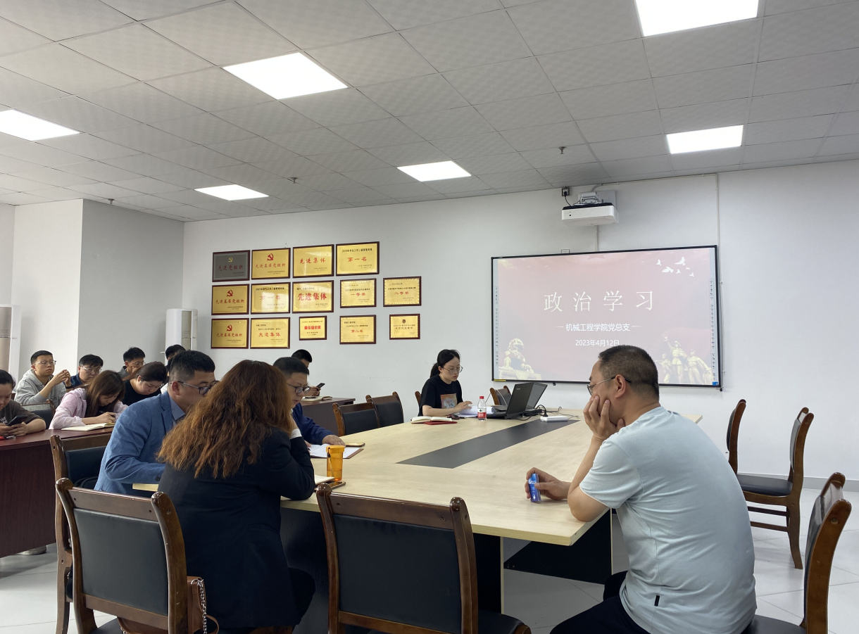 2023年4月12日下午,机械工程学院党总支在综合办公楼113会议室召开会议,学习贯彻习近平新时代中国特色社会主义思想主题教育工作会议、省委学习贯彻习近平新时代中国特色社会主义思想主题教育领导小组会议及2023年全省教育系统全面从严治党工作视频会议精神。机械工程学院全体教职员工参加学习,会议由机械工程学院副院长陈玲主持。