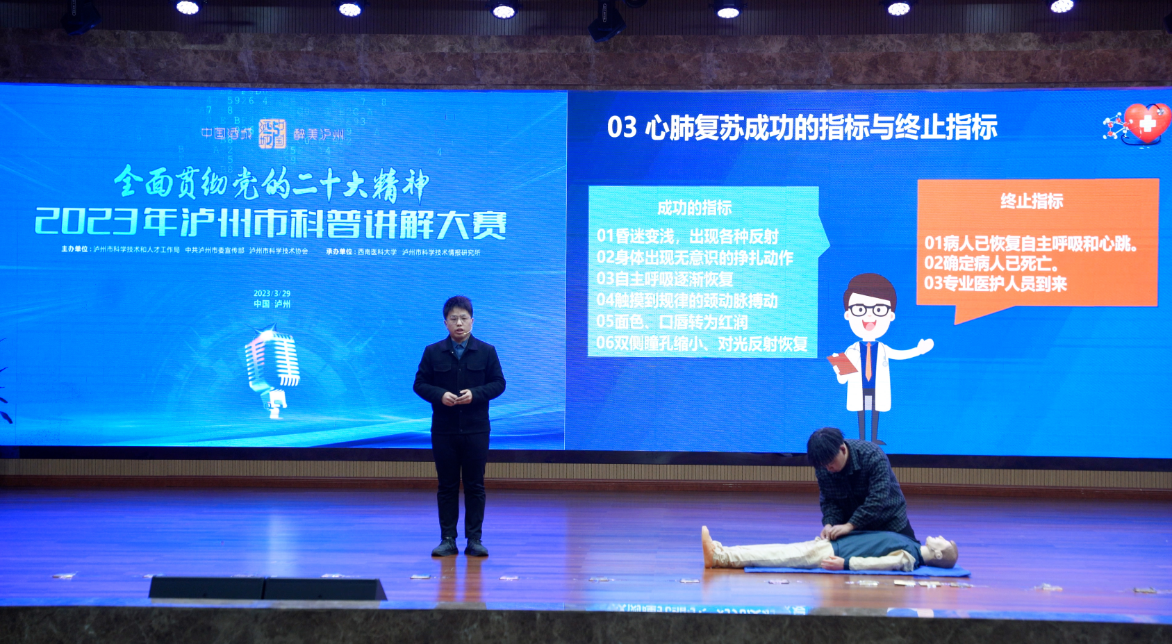 经过激烈的角逐,奚锐老师讲解的《关爱生命,“救”在身边》获得大赛一等奖,并将代表泸州市参加2023年四川省科普讲解大赛。王雪佳老师讲解的《“锂”想未来》获得比赛优秀奖。
