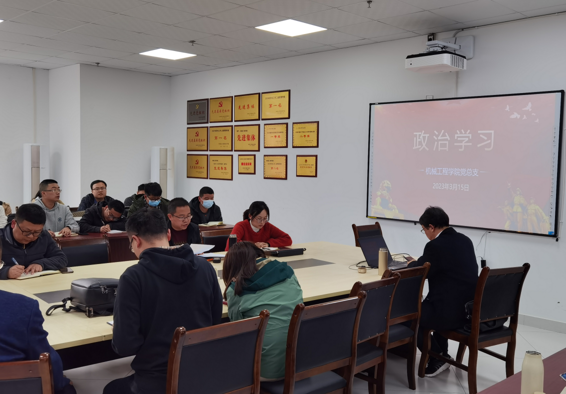 2023年3月15日下午,机械工程学院党总支在综合楼113会议室开展政治学习。机械工程学院学生党支部书记张良勇、副院长陈玲及机械工程学院全体教职员工参加了学习。会议由机械工程学院党总支副书记任小鸿主持。