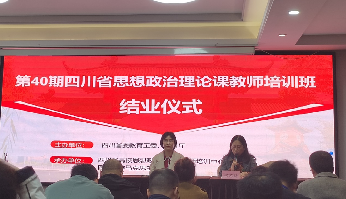为深入学习贯彻党的二十大和习近平总书记在学校思想政治理论课教师座谈会上的重要讲话精神,持续深化思想政治理论课守正创新,不断提高思政课的针对性、实效性。2023 年 3 月 16 日—3 月 20 日,四川省高校思想政治理论课教师培训中心举办的第 40 期四川省思想政治理论课教师培训班在成都召开。我校马克思主义学院罗政、张永两位老师参加了培训。