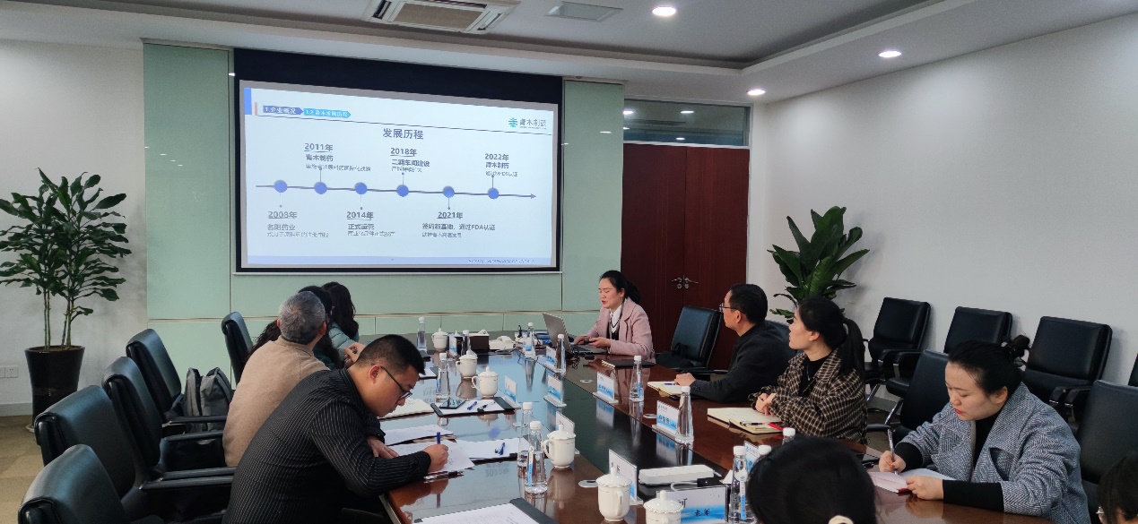 为贯彻落实党的二十大高质量发展理念,实施就业优先战略,3月8日,药品与环境工程学院副院长苏翔带领6位教师前往眉山市西部药谷产业园区的四川青木制药有限公司、四川森科制药有限公司、四川年年丰生物技术有限公司等企业调研交流,并进行了服务交流和合作探讨。