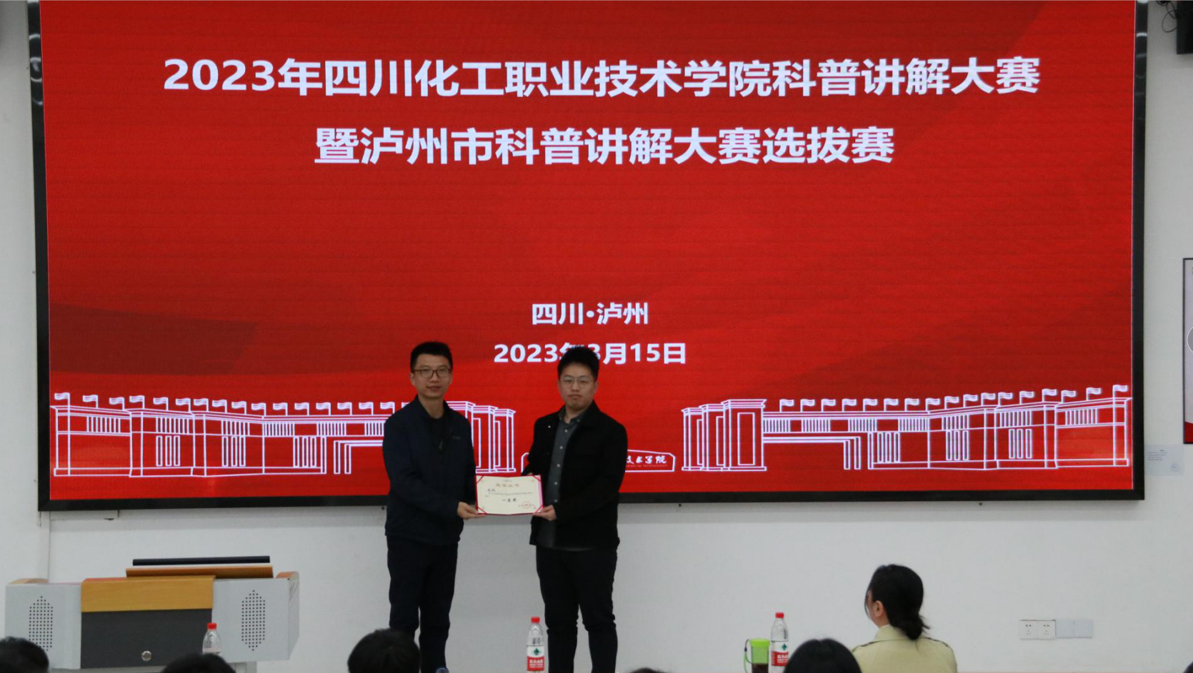 2022年3月15日,由科技处主办的四川化工职业技术学院首届科普讲解大赛圆满落下帷幕。大赛邀请智能制造学院院长李林鑫、科技处副处长文仁兴、数字经济学院熊英老师等人参加现场项目评审。经过现场21个项目的激烈角逐,药品与环境工程学院奚锐获得一等奖,应用化工学院王雪佳、数字经济学院肖恺林获得二等奖,数字经济学院李杨佩兰、代阳,药品与环境工程学院黄秋雨获得三等奖,数字经济学院曾露等10名选手获得优秀奖。