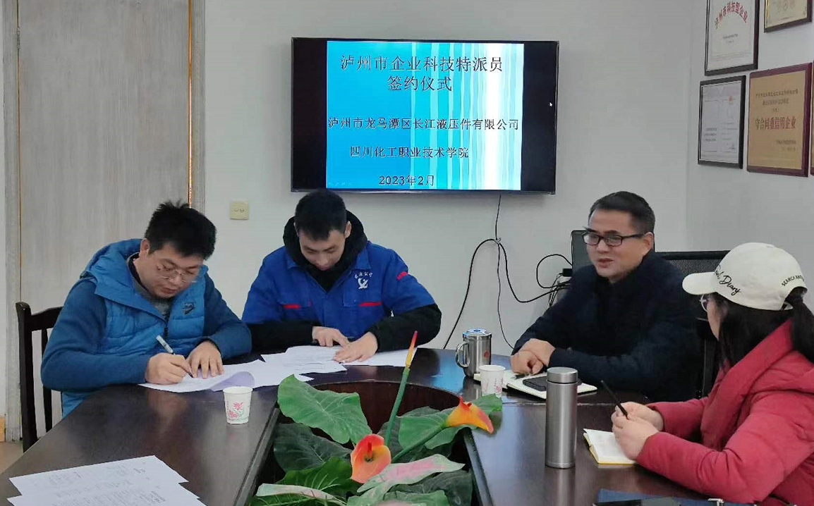 为大力推动第二批泸州市企业科技特派员企业服务工作,2023年2月24日,学校机械团团长文仁兴,团员陈丽、王渊、曾献勇一行到泸州市龙马潭区长江液压件有限公司、泸州华源液压机械设备有限公司、泸州华西机械有限责任公司、泸州市江阳区瑞奥机械有限公司开展科技特派员校企签约并进行深入交流。