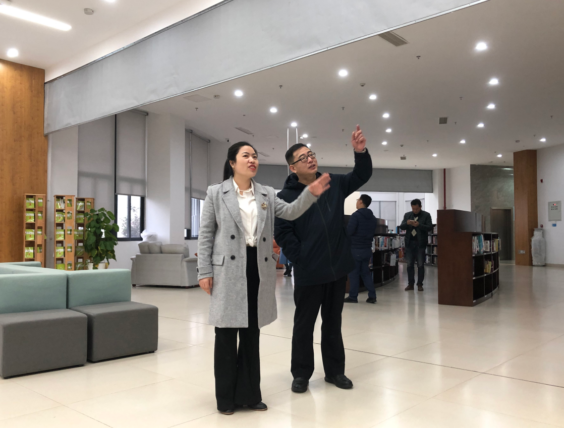 学校图书馆石晓真馆长带领史书龙副馆长一行实地参观了图书馆各层阅览区,并就我馆基本情况及空间再造完成的自由阅读区、自修专区、研修室等特色空间设置做了详细介绍。