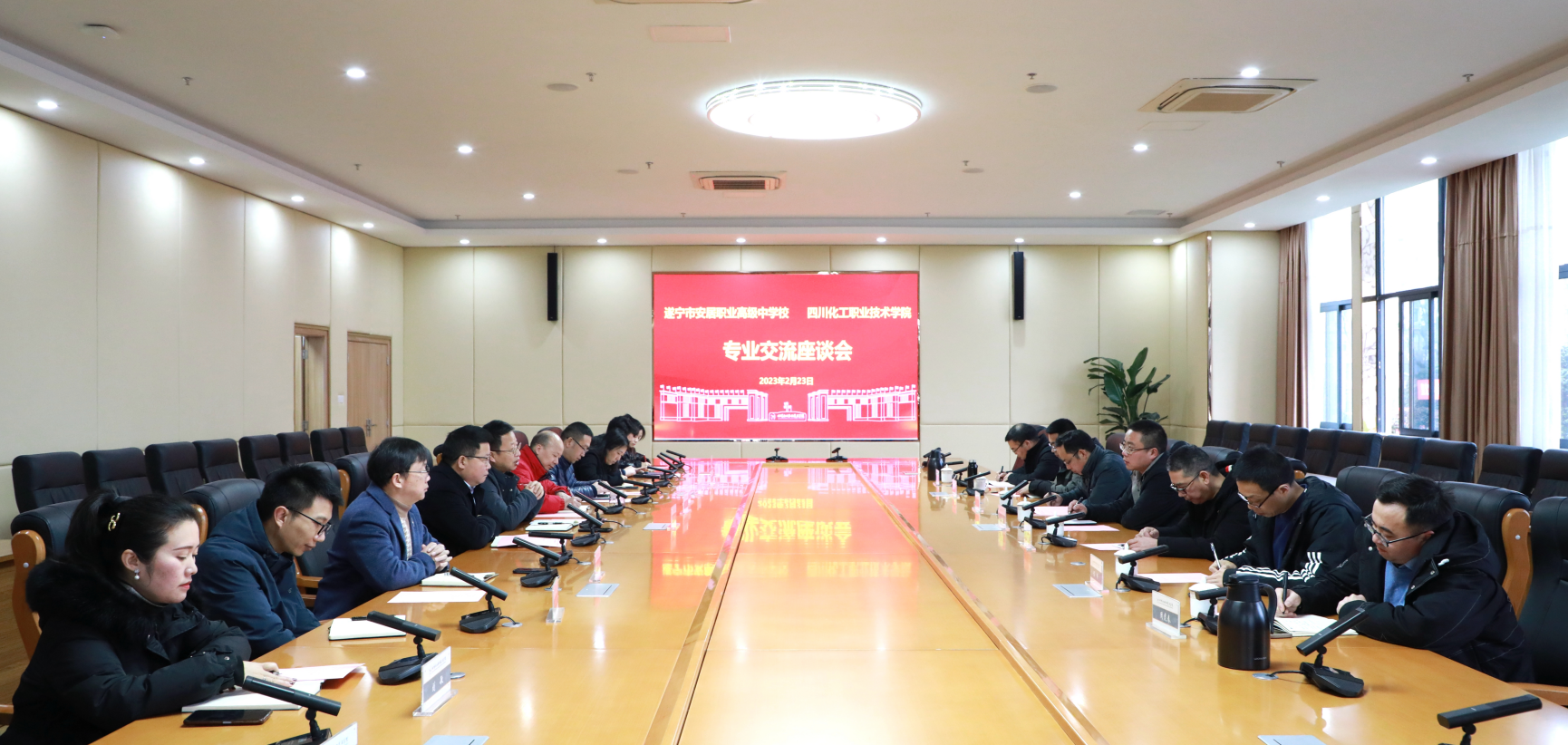 为进一步深化中高职合作,提高一体化教学和人才培养质量,共同优化设计一体化人才培养体系,2月23日上午,遂宁安居职业高级中学党委书记杨鹏、副校长陈治有、纪委书记贺勇一行七人到校开展调研,并进行专业交流座谈会。学校党委副书记、院长文申柳,党委委员、副院长蒲开伦参加专业交流座谈会,会议由学校招生就业处(校企合作办公室)处长张宏主持。