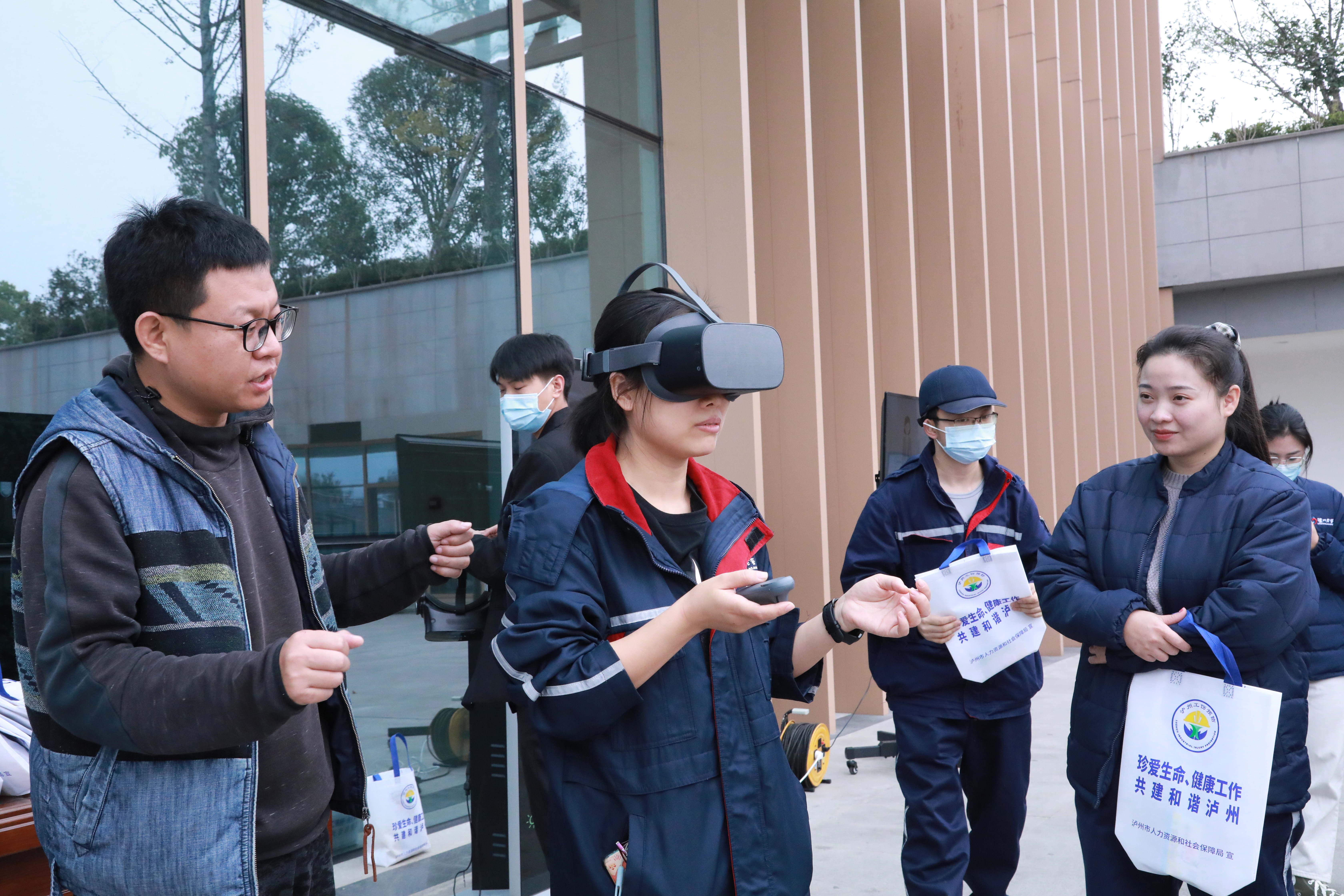 随后在泸州老窖酿酒责任有限公司D栋门前广场,企业职工聆听了工伤预防通识性知识的宣讲,体验了心肺复苏、创伤包扎、VR体验等项目,通过人机交互式的“沉浸式”学习,企业职工轻松掌握心肺复苏操作技巧和创伤包扎能力,提升了安全意识和急救技巧。体验活动后,开展了酿酒企业工伤预防专题培训,工伤预防宣教人员李夏老师详细讲述了酿酒企业工伤预防、应急救护和消防安全等知识,并通过互动竞答、现场答题测试活动,进一步提升企业职工的工伤预防意识,实现工伤预防入脑入心,助推企业高质量发展。