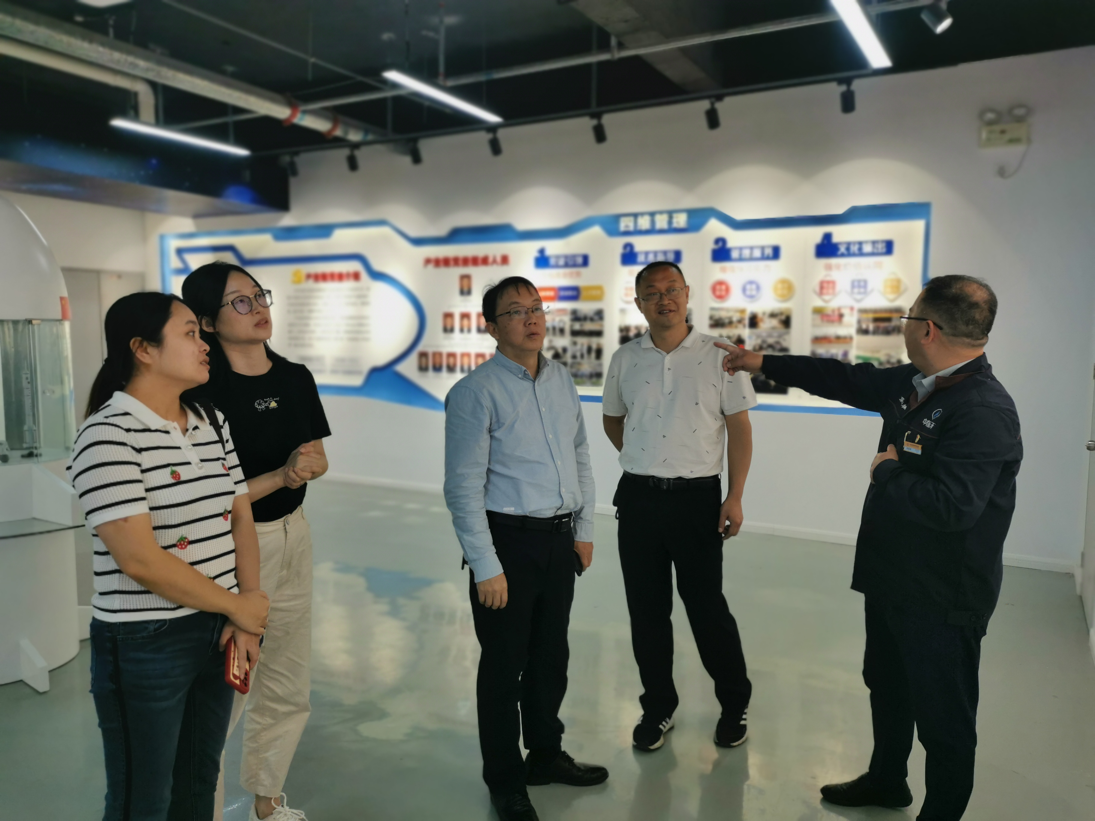 刘登华对任小鸿一行的到来表示热烈欢迎,并带领任小鸿一行人参观了企业文化墙和生产车间,感受航天人的爱国情怀,航天质量与载人航天精神。