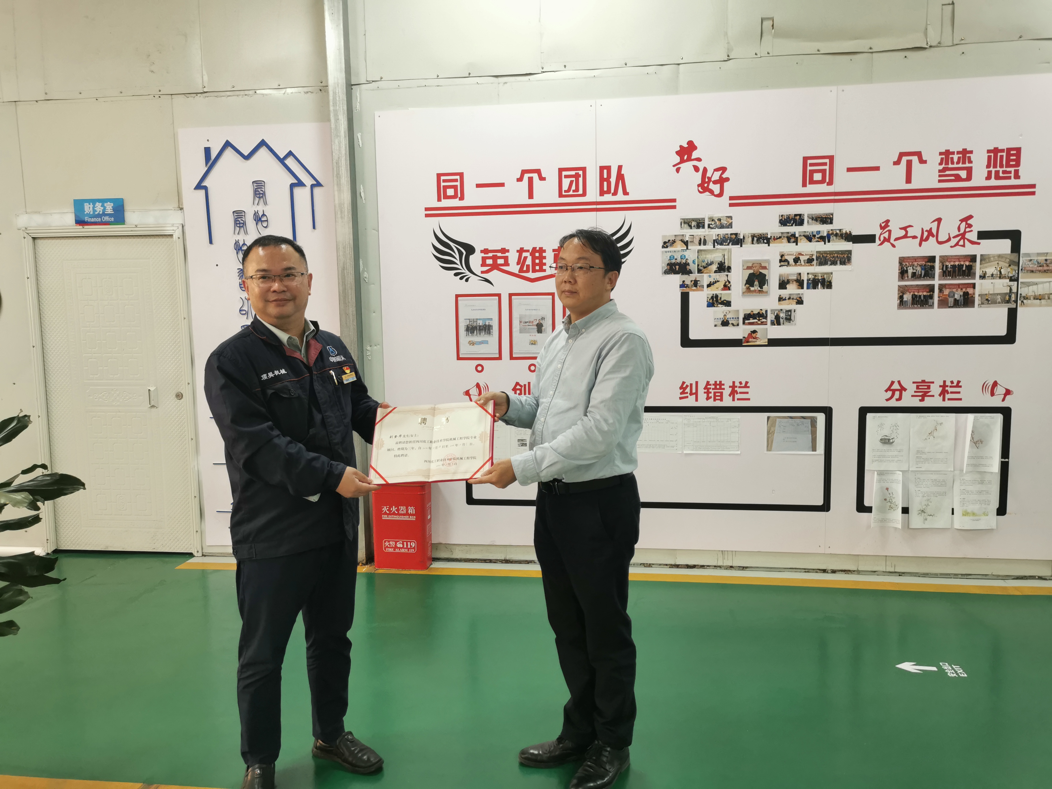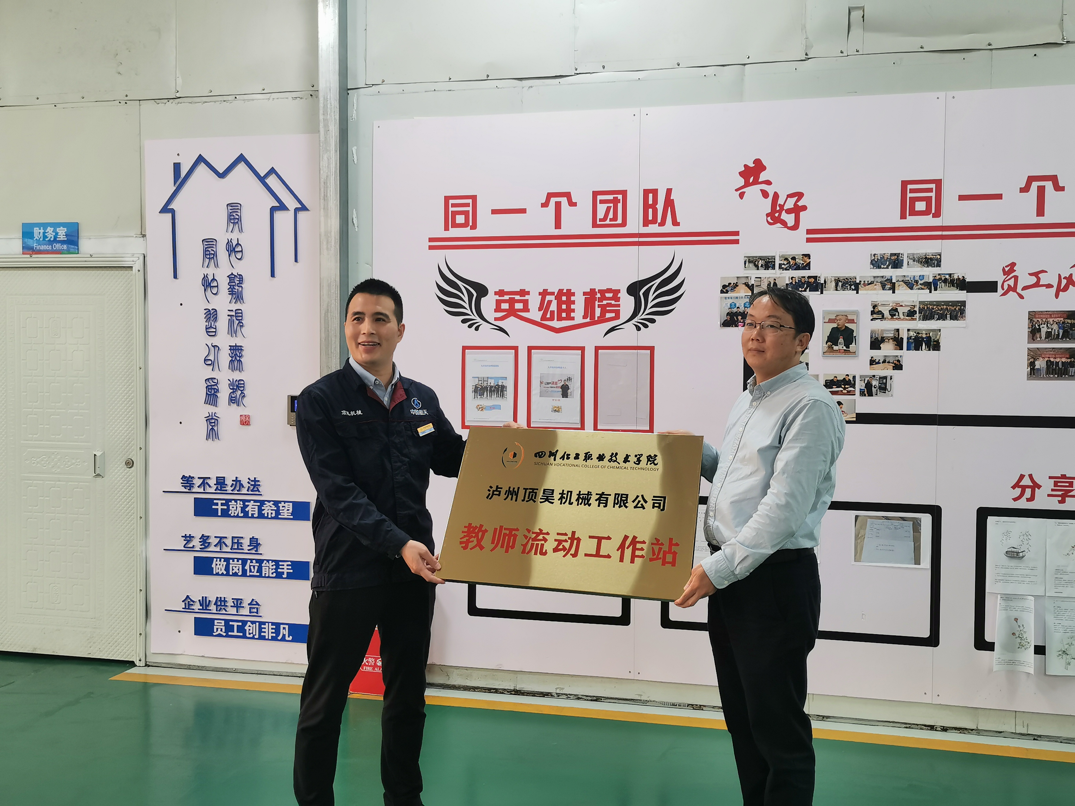 签约会上,刘登华详细介绍了公司发展历史、生产现状、发展战略人才队伍、公司生产经营状况等方面情况。任小鸿从教书育人、科学研究、服务社会等方面对学校进行介绍,双方在交流与碰撞中不断探寻合作方向及方式,最终达成共识并签署了校企合作协议。任小鸿在企业文化展区向顶昊机械授予“校外实践基地”、“教师流动工作站”授牌仪式,并聘请企业高技术人才担任机械工程学院专业顾问,指导学校学生专业学习。