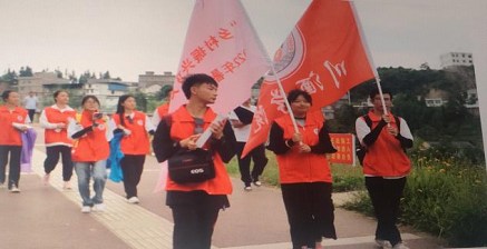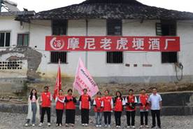 图为实践团在当地村干部的带领下去往金榜村酒厂