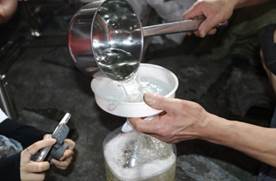 图为实践团队成员品尝老虎埂酒厂的高粱白酒
