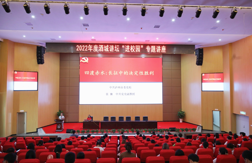 6月15日下午,酒城讲坛“进校园”专题讲座在学校图书馆第一报告厅举行。讲座由酒城讲坛讲师、泸州市委党校张驰副教授主讲,主题为《四渡赤水:长征中的决定性胜利》。讲座由学校科技处刘涛副教授主持,300余名师生参加讲座。