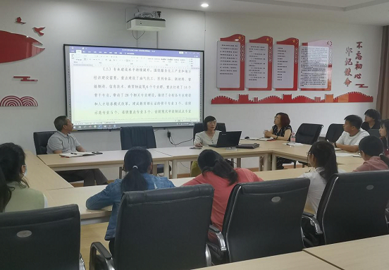 教师党支部书记曹栩函带领全体党员学习讨论了《在中国共产党四川化工职业技术学院第三次代表大会上的报告》,会议主要从回首过去五年,奋进新征程以及今后五年的重点工作三个方面来进行学习讨论。曹栩函对学校党代会报告进行了深入浅出的解读,以“划重点”的形式,提纲挈领地把学校党代会精神传达给每位成员,向大家传达了党代会精神和今后的奋斗目标,要全面加强党的领导,开拓创新、求真务实,为学校的教学新发展贡献力量,紧紧围绕立德树人根本任务,对标进竞、担当进取、争创一流,奋力建设“五个新化院”,不断推进学校高质量发展,为建成高水平高职学校,创建职教本科院校而努力奋斗!