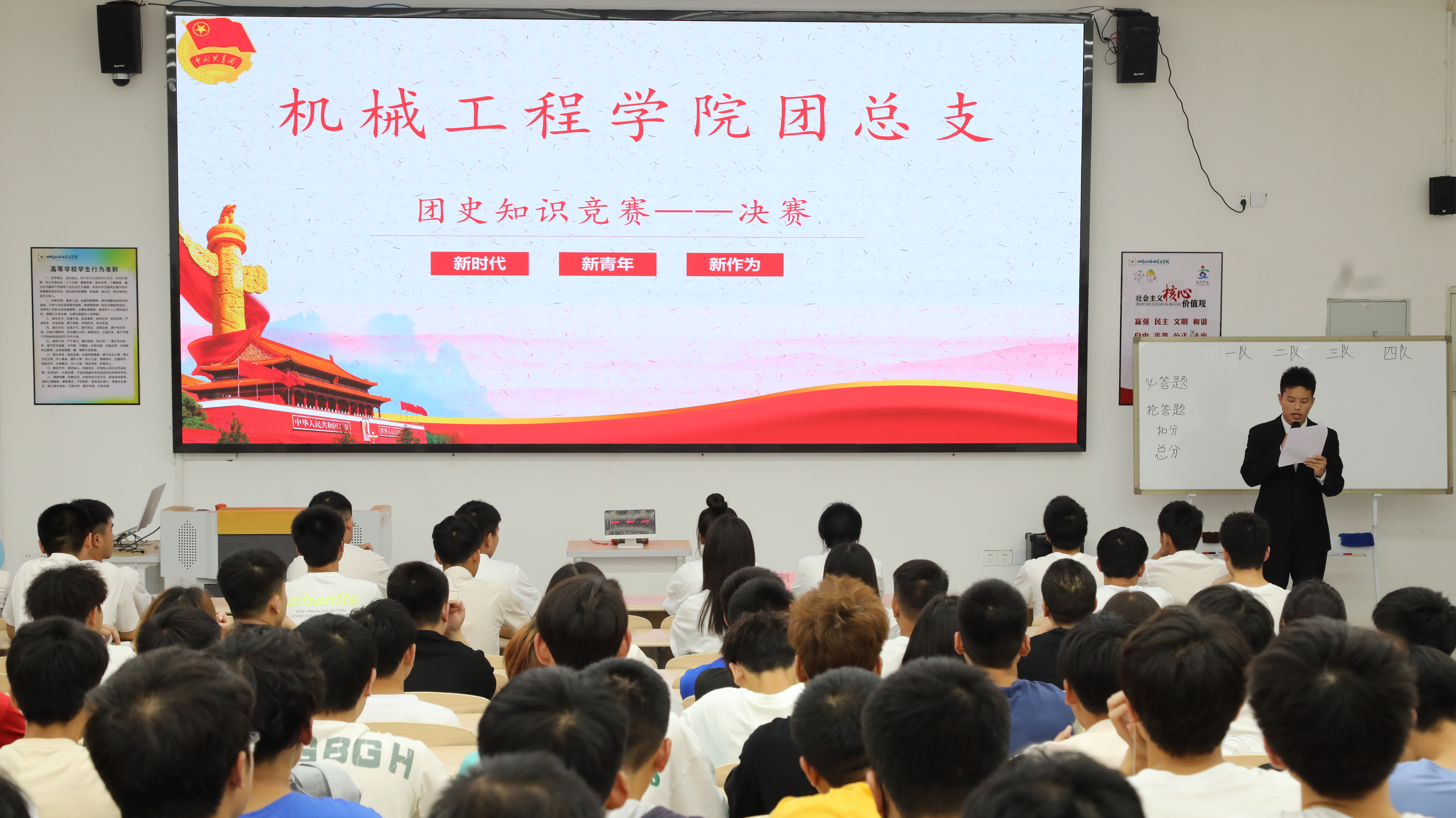 为庆祝中国共产主义青年团成立100周年,激昂青春奋斗,以昂扬的斗志,喜迎党的二十大。5月25日下午,机械工程学院纪念中国共产主义青年团成立100周年团史知识竞赛顺利举行。活动由机械工程学院团总支委员会主办,通过精彩纷呈、紧张激烈的答题环节,让全体同学重温一段段红色历史,深刻学习党和团的光荣传统和优良作风,凝聚精神力量、砥砺优秀品格。