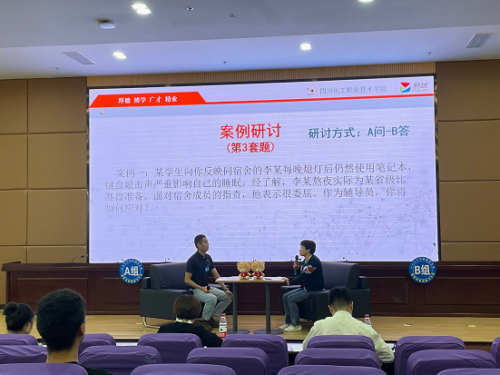 本次大赛共有来自全校7个二级学院的14名辅导员进入决赛,设置一等奖1名,二等奖2名,三等奖3名。邀请西南医科大学学工部部长谭群英,外国语学院学生科长、四川省第八届高校辅导员素质能力大赛三等奖获得者刘烨,学校学生处处长邓子萍,团委书记张林园担任评委。赛事对标省赛,设置谈心谈话、案例研讨两个环节,全面考察和检验参赛选手的理论水平、逻辑思维、语言表达、临场应变等综合素质能力。