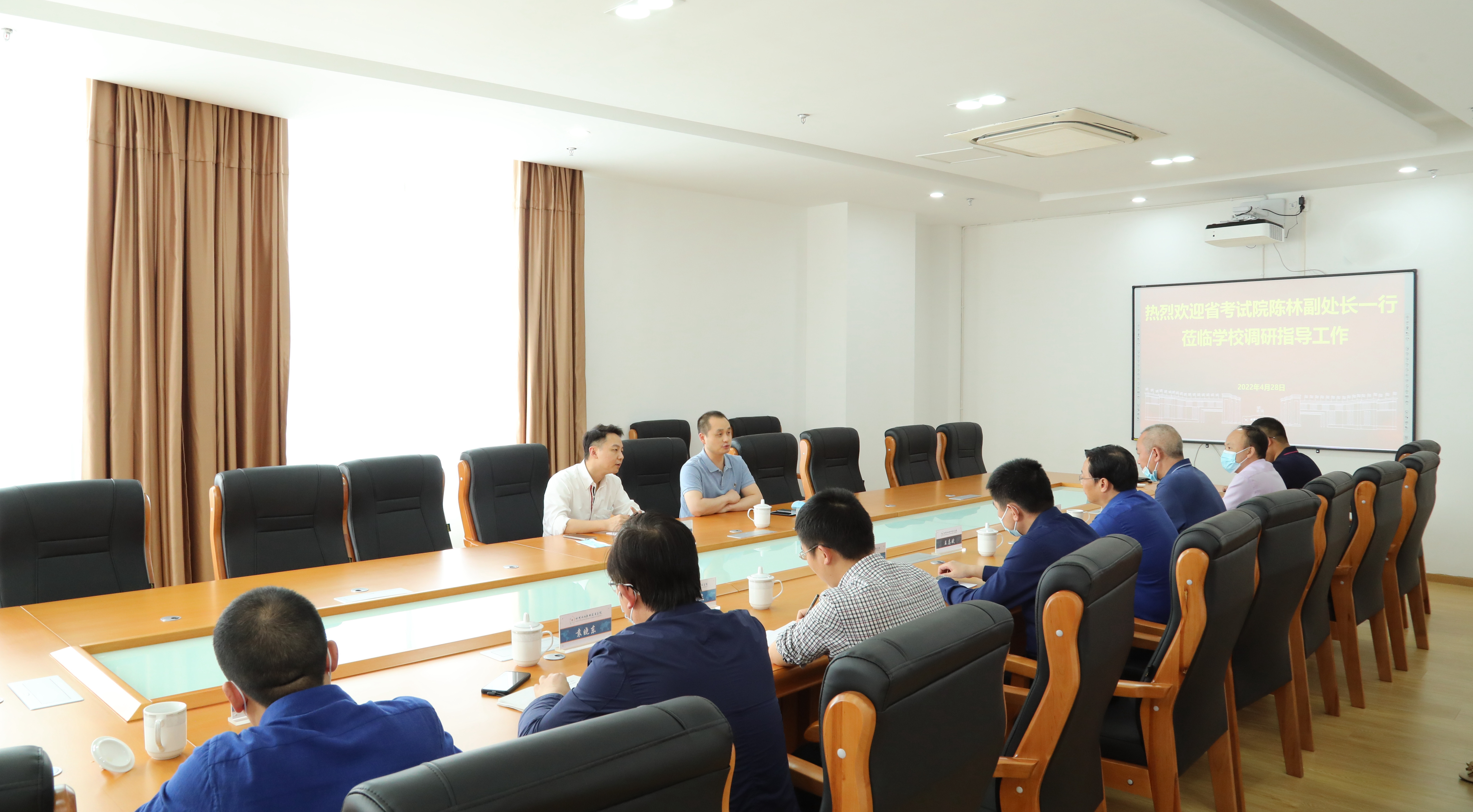 4月28日下午,省教育考试院非学历处副处长陈林莅临学校,检查指导全国计算机等级考试考点工作。市自考办副主任冯友平、学校副院长王志斌参加检查。