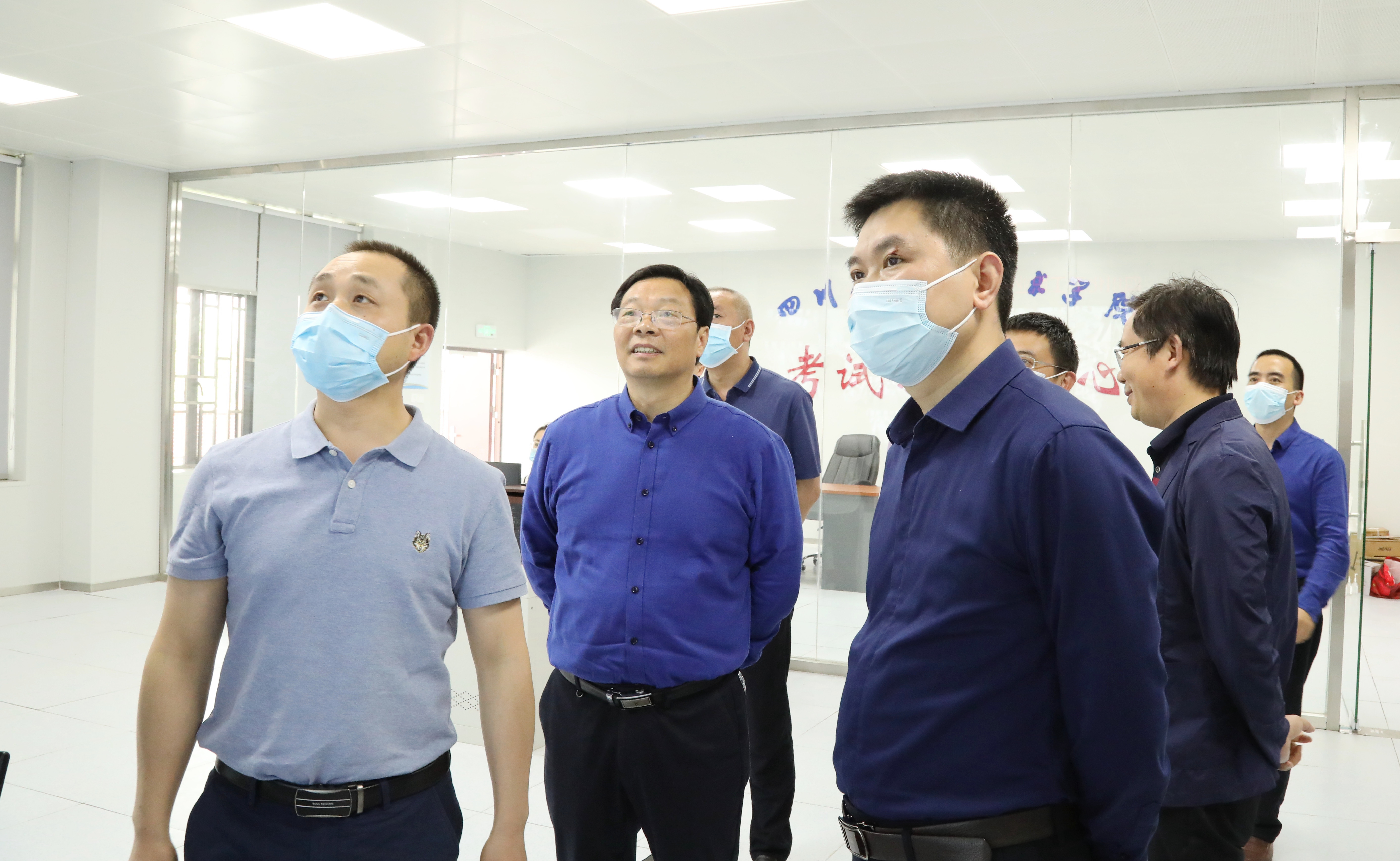 检查中,陈林一行先后前往学校全国计算机等级考试标准化考试机房、数据中心、考务办公室、监控室、保密室等地,实地查看设施设备配备及考场监控与省考试院连接情况。