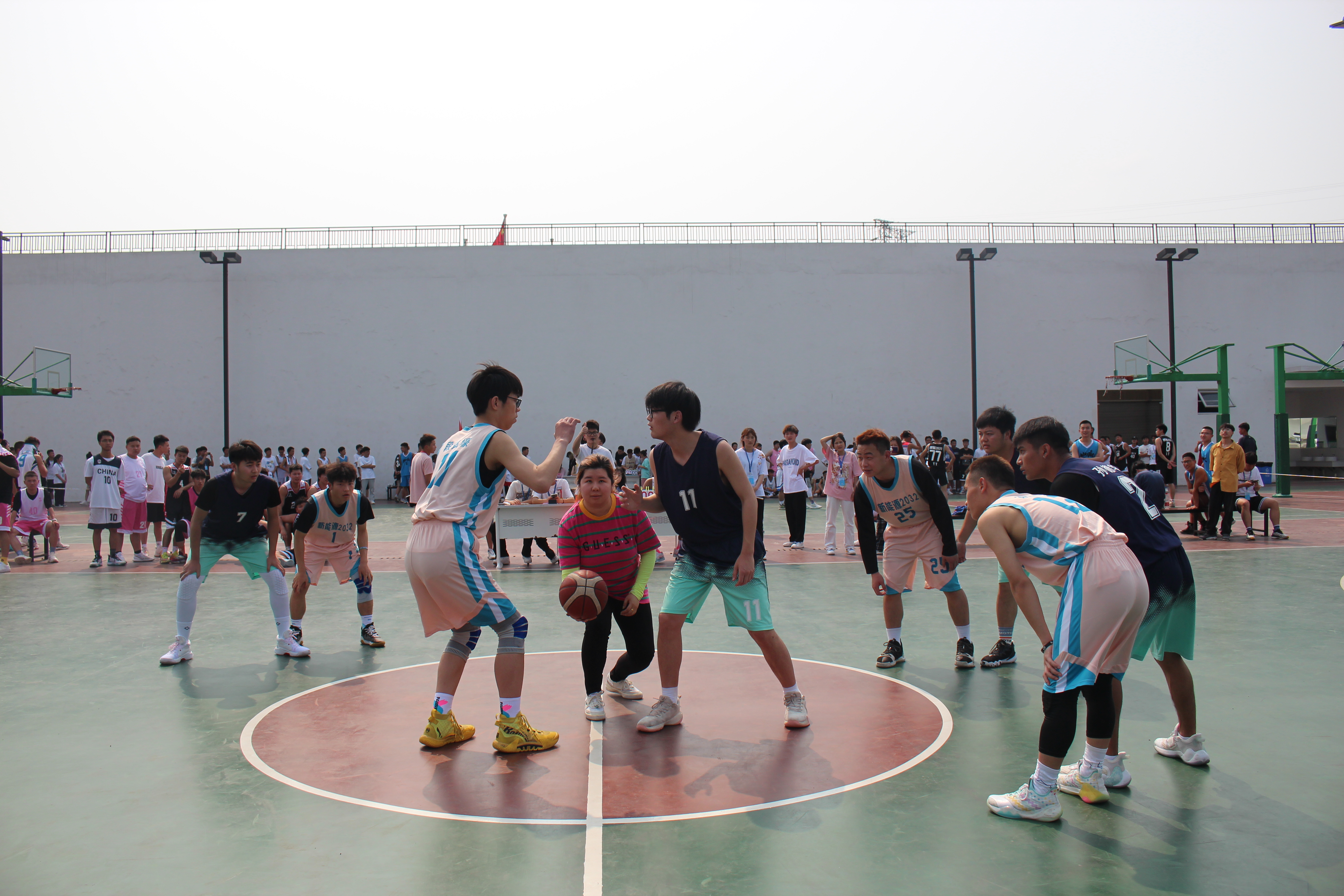本次篮球联赛在蒲蕾老师和郭嘉捷老师的发球下正式拉开了帷幕,第一场比赛的参赛队伍为新能源2032班vs模具2031班、新能源2031班vs装备2031班。不惧烈日灼晒的少年们,在球场上肆意挥洒着朝气和青春,用汗水点燃激情,舞动着矫健健美的英姿,熟练的运球,精彩的传球,互相配合的进攻和抢夺,那是班级球员们之间独有的默契,球员们用满腔的热情谱写了一次次完美进球,博得了在场观众同学们的喝彩和掌声。整场比赛扣人心弦,激烈有趣,最终新能源2032班和新能源2031班获得本场比赛胜利,成功晋级。