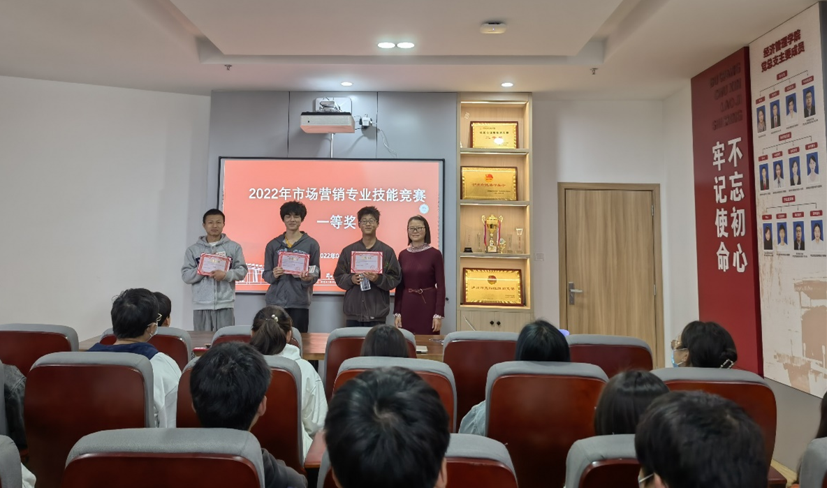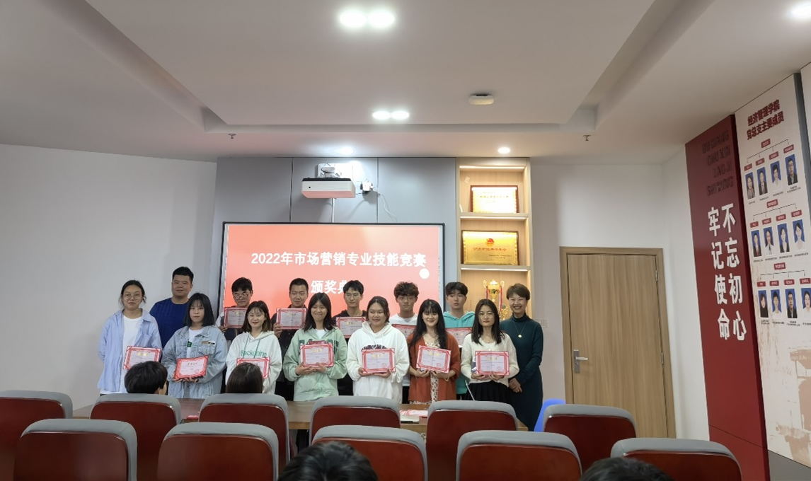 4月6日,经济管理学院2022年营销专业技能大赛颁奖典礼于综合楼426会议室顺利举行。经济管理学院党总支书记张晋、副院长陈秀芬、营销专业群教研室主任谢駸,营销专业教师团队以及班级辅导员老师参加了此次活动。