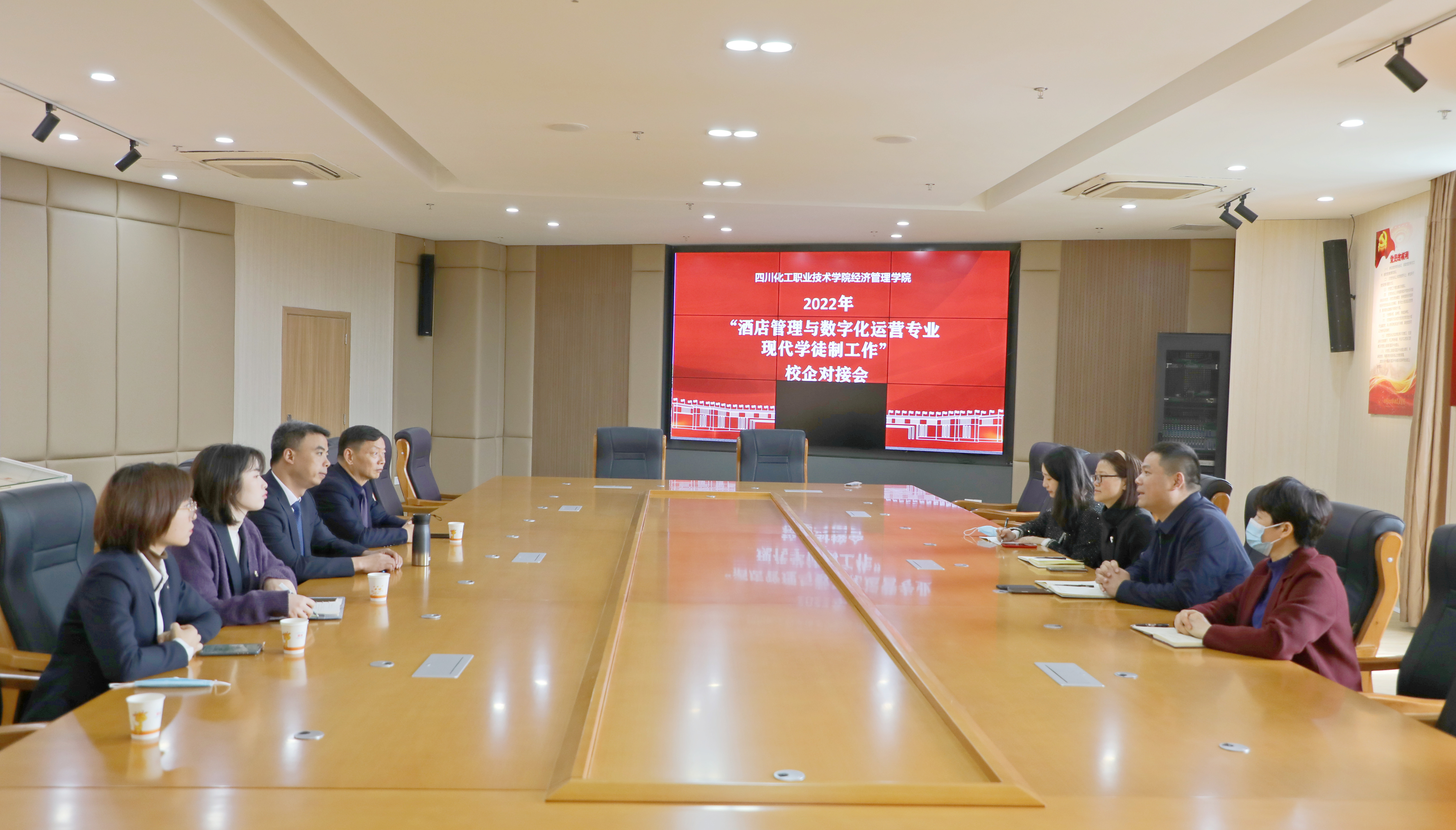 交流活动后,校企双方开展了现代学徒制工作对接会。经济管理学院党总支书记张晋、院长马小洪、副院长陈秀芬,酒店管理与数字化运营专业负责人宣雯娟与成都正熙国际酒店总经理刘志军、成都明宇尚雅酒店综合服务总监彭小勇一行,对酒店管理与数字化运营专业现代学徒制前一阶段工作进行了总结。双方均表示,要进一步扩大校企协同育人的成果,加强沟通合作,合理利用校企各项资源,充分发挥校企双主体育人的优势,提升人才培养质量,为企业和行业输送更多德智体美劳全面发展的人才。