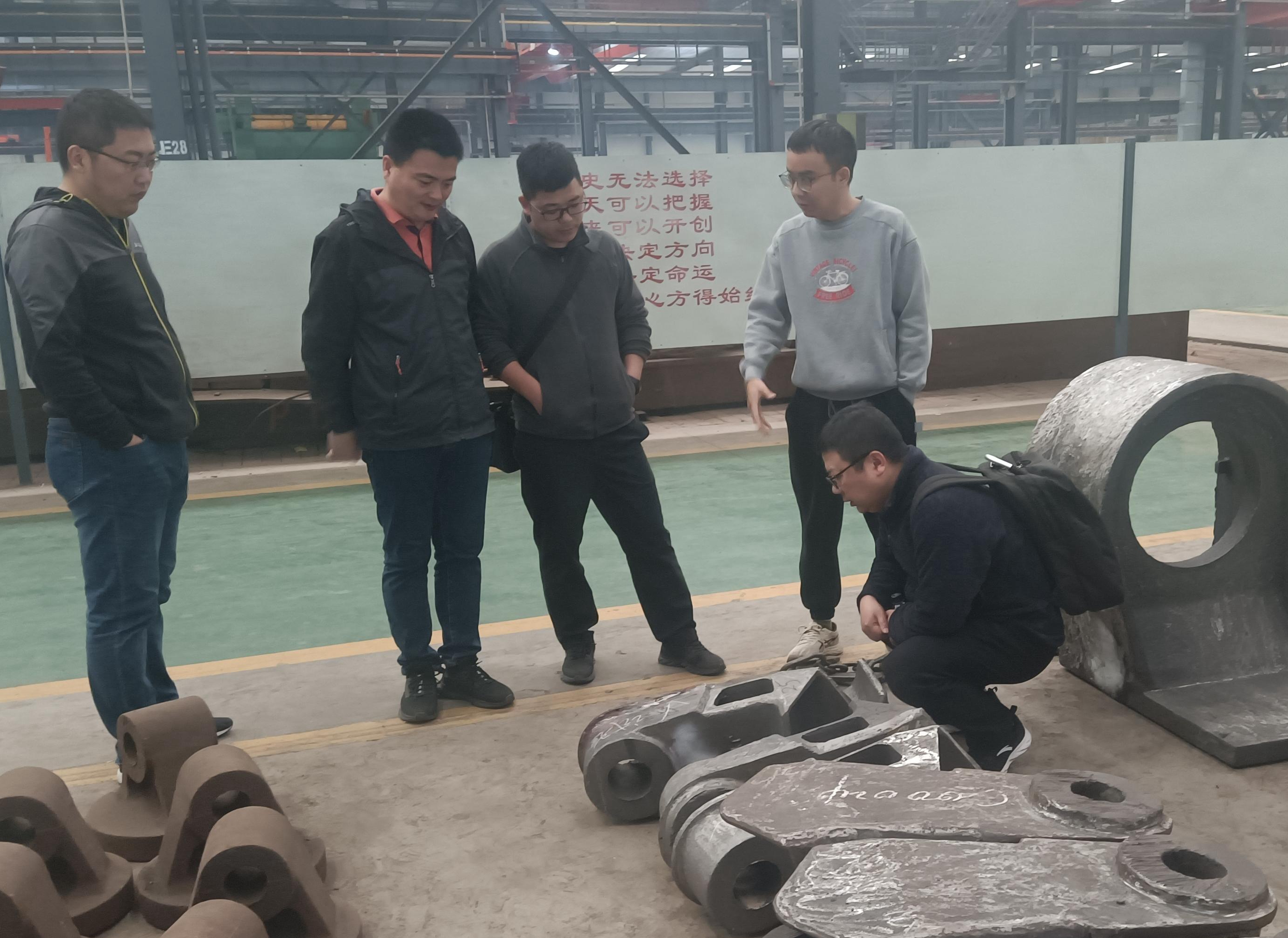 会后,邦立重机技术中心副主任王文豪带领调研组一行参观焊接车间,希望学校能够在力学性能及晶相组织分析方面提供分析帮助。