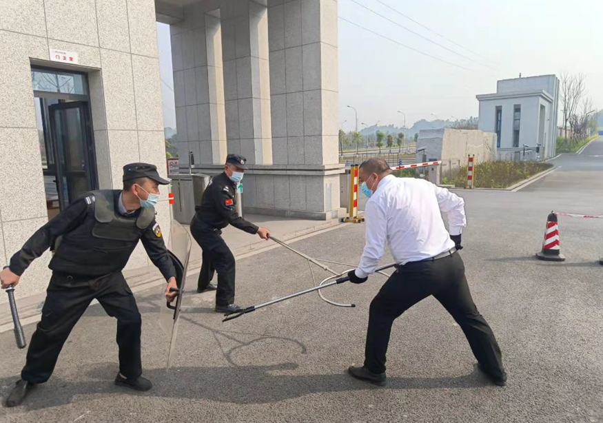 川酒物业保安队长组织开展了防暴处突应急培训。现场组织保卫人员就防暴叉、盾牌、防刺服、防暴头盔等安全器械的使用和突发事件的处置程序进行了培训讲解和模拟演示。
