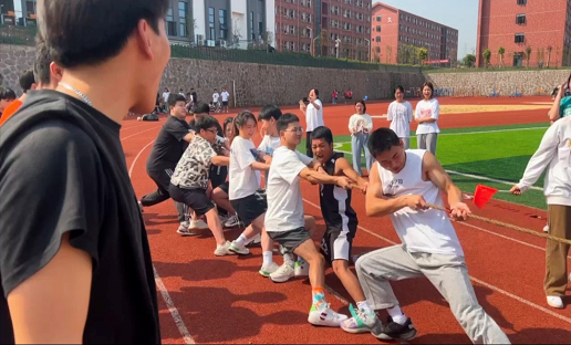 紧接着进行的是紧张刺激的拔河比赛,同学们热情高涨,趣味运动会达到高潮。比赛中,选手们在场上奋力拼搏,场外的观众不断地呐喊助威;赛场上每一位队员都把自己全身力量贯注在拔河绳上,每个班级的心也同时紧紧团结在一起。经过激烈角逐,自动化2131班摘得桂冠,亚军自动化2133班、季军电气2133班。