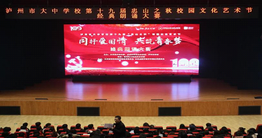 12月11日,泸州市大中学校第十九届“忠山之秋”校园文化艺术节“同抒爱国情,共筑青春梦”经典朗诵大赛在四川化工职业技术学院博雅礼堂如期进行。本次朗诵比赛由共青团泸州市委、泸州市教体局、泸州市学生联合会共同主办,四川化工职业技术学院承办,共青团智能制造学院总支委员会和共青团数字经济学院总支委员会协办。学校副院长邓启华,校团委书记张林园、学生处副处长苏坤、智能制造学院副院长(主持工作)李林鑫莅临比赛现场。大赛由国家一级播音员、泸州广播电视台资深媒体人于波,泸州广播电视台主任编辑、播音主持工作室负责人吴源敏,中视协会员、四川省视协第五届理事、泸州市广播电视台多届泸州春晚总导演、节目考评组组长余洪梅专业执评。