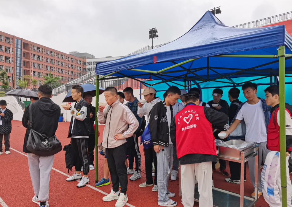 在绵绵的细雨中,为了防止足球健儿们感冒,我校还专门为所有运动健儿们送来热腾腾的姜汤。