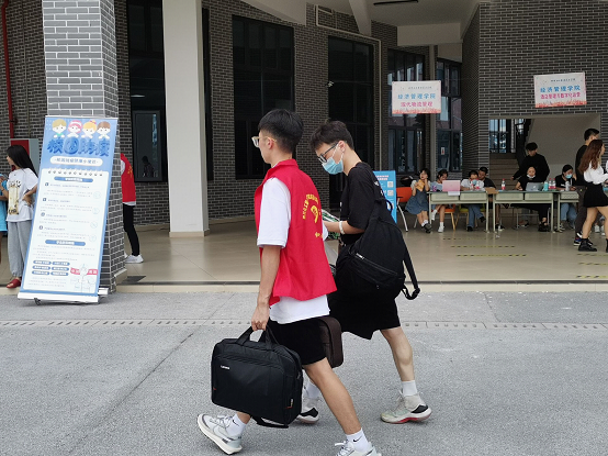 迎新工作如火如荼进行着,校园各处都是我们热心的红马甲志愿者们忙碌的身影。从核酸检测到新生入住、从带路到行李搬运,志愿者们都和新同学一起前行,主动为其介绍我们的新校区,一路谈笑风生,缓解了新生初来乍到的陌生感,让他们更加了解学校,对新学校的校园生活充满希望与期待。