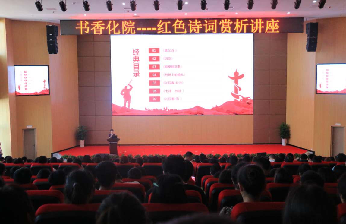今年是中国共产党成立100周年,我校高度重视党史学习教育工作,积极开展党史学习教育系列活动,从而扎实推动党史学习教育进校园。本次讲座,让师生们通过品读红色经典诗词,进一步弘扬时代精神,把党史学习教育与文学欣赏结合起来,进行了一次有益的探索,在师生群体中掀起了党史学习教育的热潮。