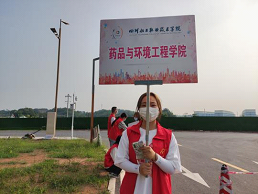 晨光熹微,初秋凉风拂面,新校区里处处挂满了欢迎同学们的条幅标语,表达了学校对新生的热烈欢迎。校园里,药品与环境工程学院“红马甲”红日志愿者,“绿马甲”青马班学员们忙的不亦乐乎,他们活跃在人群中,分工明确、有条不紊地迎接着新生。在烈日骄阳下,志愿者们热心为新生指引道路,替他们搬运行李,给他们耐心讲解入学手续办理细节以及安全须知,引导他们到2021级辅导员处登记相关信息,展现出了志愿者文明有礼、热情争先的良好形象。