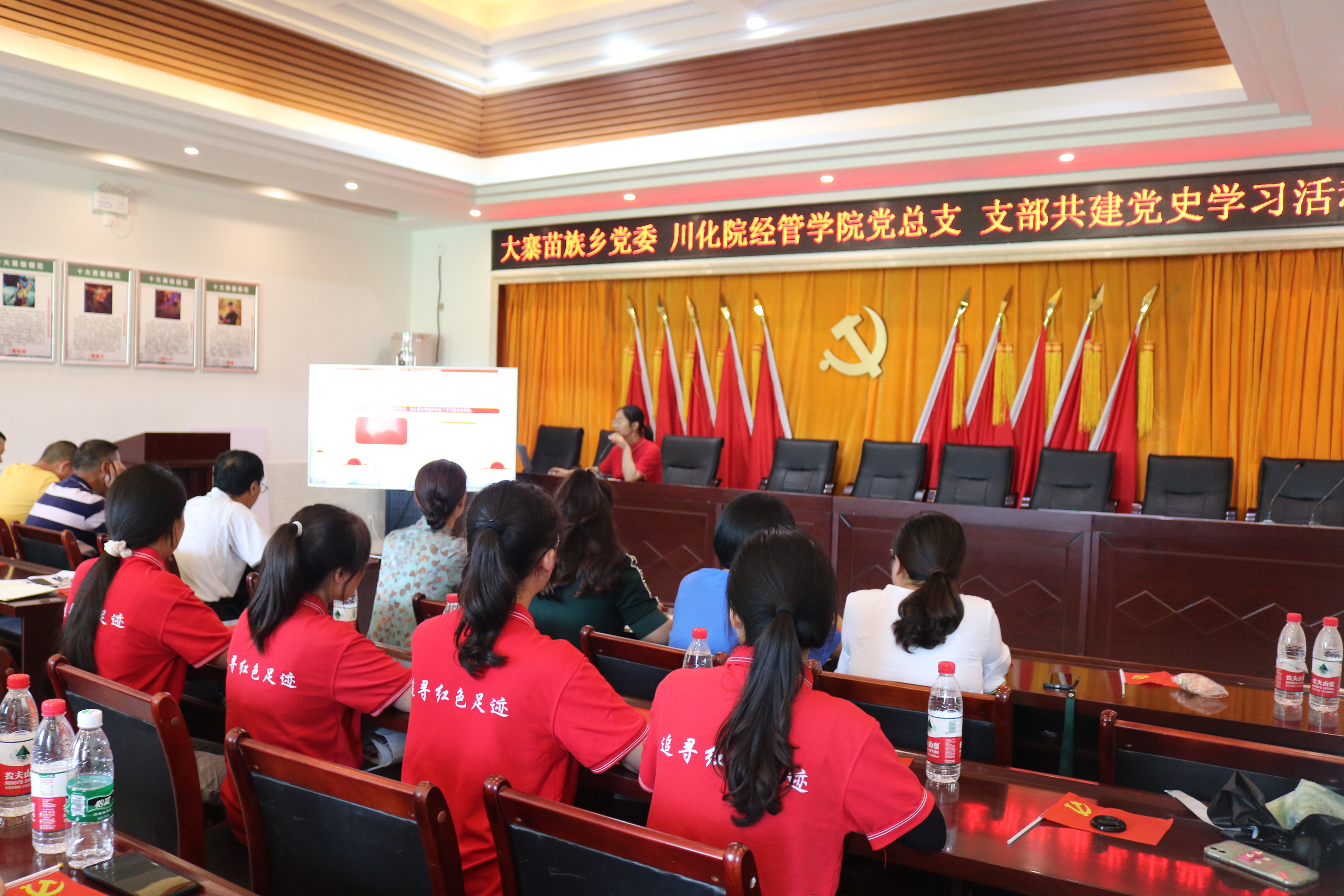 赓续革命精神。在两个一百年交汇之际,作为共产党员要学习革命先烈的伟大精神,不忘初心,牢记使命。实践团队队员在大寨苗族乡积极与当地乡政府对接,7月13日下午,在当地乡政府会议室,队员和当地党员同志共同开展了党史学习分享会,深入贯彻学习习近平总书记在共产党成立100周年大会上的重要讲话。会后,队员和当地党员同志一起交流、学习,加深对共产党史的理解。实践队员纷纷表示,作为新时代的新青年,要以青春之奋斗,建设青春之现代化中国,为乡村振兴事业奉献自己的智慧和力量。