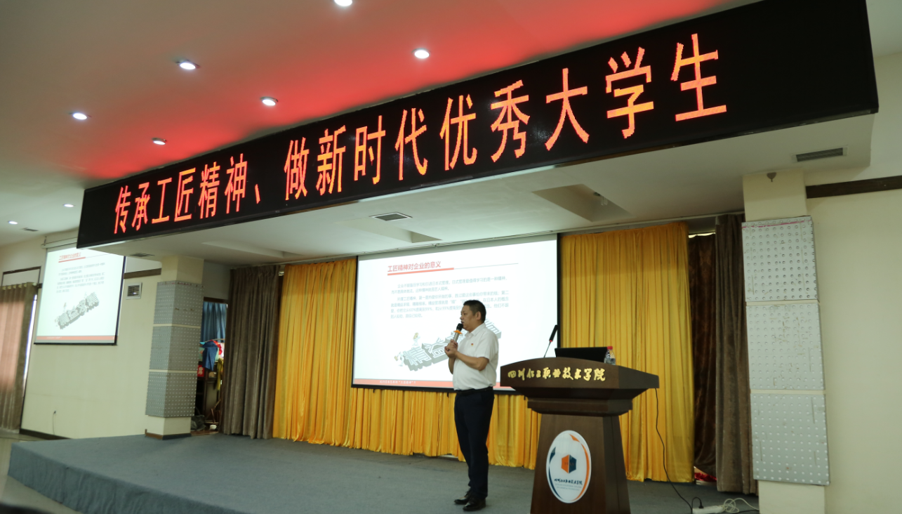 为大力弘扬工匠精神,使同学们养成勤奋学习、刻苦钻研的良好习惯,培育践行工匠精神的积极情怀和自觉意识。7月2日下午,药品与环境工程学院团总支在学校行政楼五楼会议室组织开展了“传承工匠精神,做新时代优秀大学生"专题讲座。药品与环境工程学院党总支书记李光荣,团总支书记苏双双、学生科长蒋朝英,部分教师以及部分学生参加了本次主题分享讲座。会议由药品与环境工程学院党总支书记李光荣主持。本次讲座邀请的是双钱集团(重庆)轮胎有限公司、四川化工职业技术学院优秀校友、全国“五一”劳动奖章获得者刘军华技术副总监为主讲人。