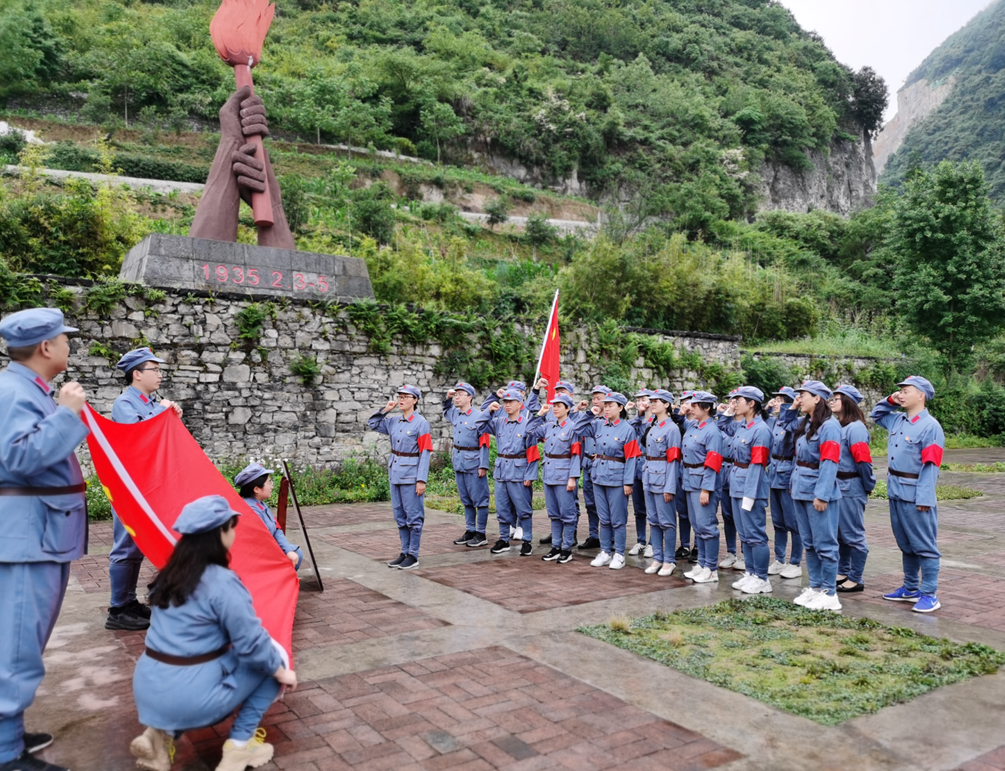 经济管理学院党总支书记张晋带领参加活动的领导和老师在石厢子中央红军长征纪念广场重温入党宣誓,在鲜红的革命火种前,坚定地举起右手,庄严宣誓。不忘为中国人民谋幸福的初心,牢记牢记为中华民族谋复兴的伟大使命。