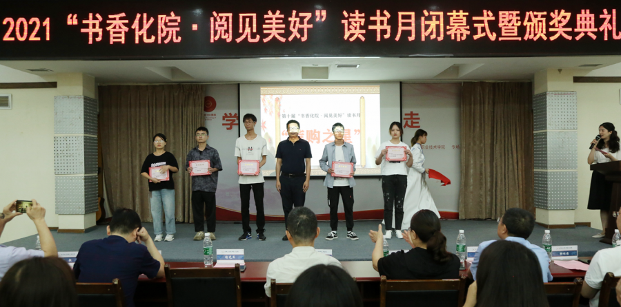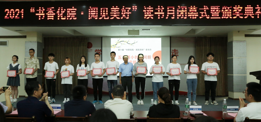 6月2日,由学校图书馆主办的第十届读书月闭幕式暨2021年“书香化院·阅见美好”读书月活动颁奖典礼在行政楼五楼会议室隆重举行。学校党委副书记陈淑娟、副院长蒲开伦、邓启华参加活动。