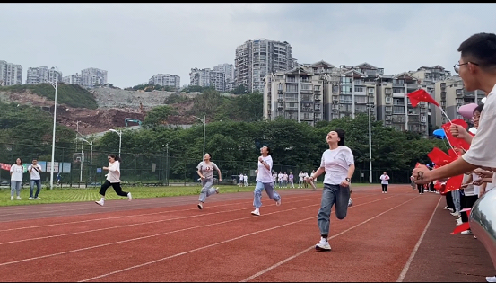 以青春奔赴美好未来。活动在以班级为单位的男女混合迎面接力赛中进入高潮,由各班组成的团队代表班级参赛,赛场上奔跑的青年手握接力棒蓄势待发,伴随着班级同学们的加油声、呐喊声,运动员们充满了动力,似如破竹。以青年的力量,奔赴美好的未来。