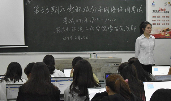 为检验入党积极分子对党理论知识的学习效果,进一步增强其对党的认知水平, 4月25日,药品与环境工程学院学生党支部在综A501、综A503教室组织开展了第33期入党积极分子线上结业考试。本次考由学生党支部组织实施,党支部书记苏双双担任监考。