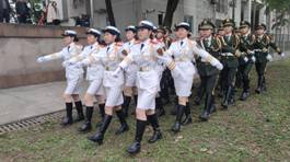 国旗班的旗手们迈着整齐有力的步伐,庄严地护送国旗入场,铿锵有力地走向国旗台。主持人一声“升国旗,奏国歌,行注目礼” ,全场弥漫着一种庄严肃穆的气息。鲜艳的五星红旗冉冉升起,在化院上空中飘扬着,点燃了同学们的爱国热情。