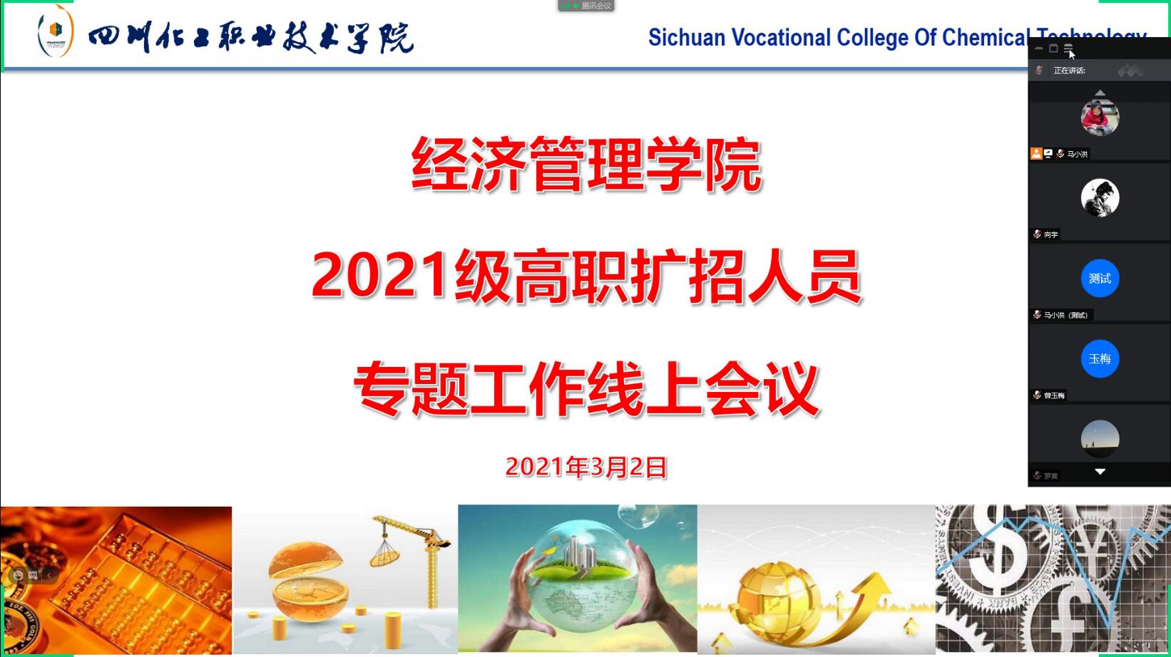 为保证社会扩招人员教学工作顺利推进,提前做好相关教学工作的准备,根据学校相关工作要求,经管学院于3月2日晚上通过腾讯会议组织召开社会扩招人员教学管理工作会议。各课程任课教师、电商和营销专业负责人、教学和学生管理人员及经管学院全体领导参加了会议。会议由经管学院院长马小洪主持。