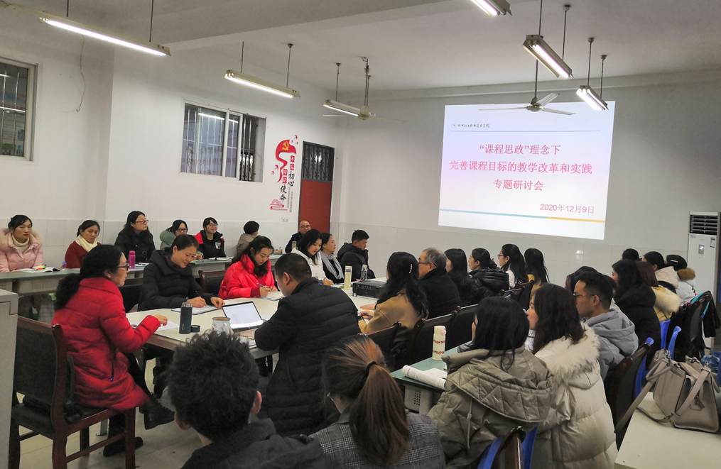 12月9日,经济管理学院组织全体教师开展了“课程思政”理念下完善课程目标的教学改革和实践专题研讨会。学院邀请教学督导组刘文教授到场指导。青年教师们展示了自己所授课程的教案首页,主要针对教学目标进行阐述,在场教师纷纷点评,提出针对性的意见和建议。