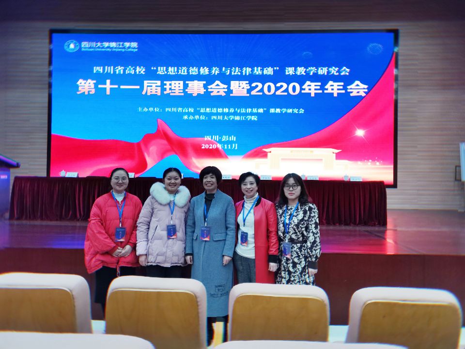 2020年11月28日至29日,四川省高校“思想道德修养与法律基础”课教学研究会第十一届理事会暨2020年年会在四川大学锦江学院举行,来自全省70余所高校从事“思想道德修养与法律基础”课教学的有关院系领导、教师共300余人参加了本次会议。学校马克思主义学院张国蓉、唐晓英、郭真瑞等五位教师参加了此次会议。