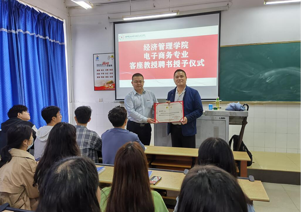 随着2020级新生入学教育工作的顺利推进,经济管理学院电子商务专业教学团队于10月14日开展了新生专业教育。电子商务专业带头人马小洪,电子商务专业负责人叶永霞、电子商务专业骨干教师郭栩杏等参加了专业介绍会。介绍会还特别邀请了我校客座教授、百度四川地区HRBP渠道部高级总监张保刚先生到会指导。