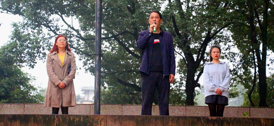 在全体师生的注目下,英姿飒爽的国旗班同学们护送着鲜艳的五星红旗入场。主持人一声“升国旗,奏国歌,行注目礼”后,升旗手振臂一挥,鲜艳的五星红旗在空中不受风雨阻挡缓缓升起,在化院上空迎风飘扬。