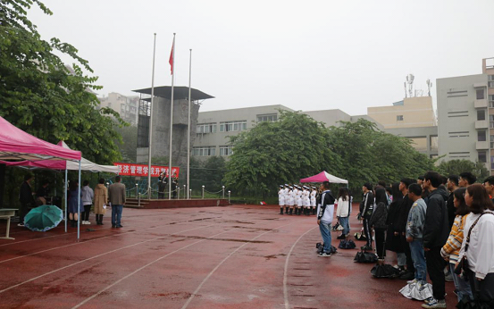 10月12日早上7点10分,经济管理学院在新运动场举行了本学期第一次升旗仪式。经济管理学院党总支副书记张晋、副院长马小洪以及全体同学参加了升旗仪式。