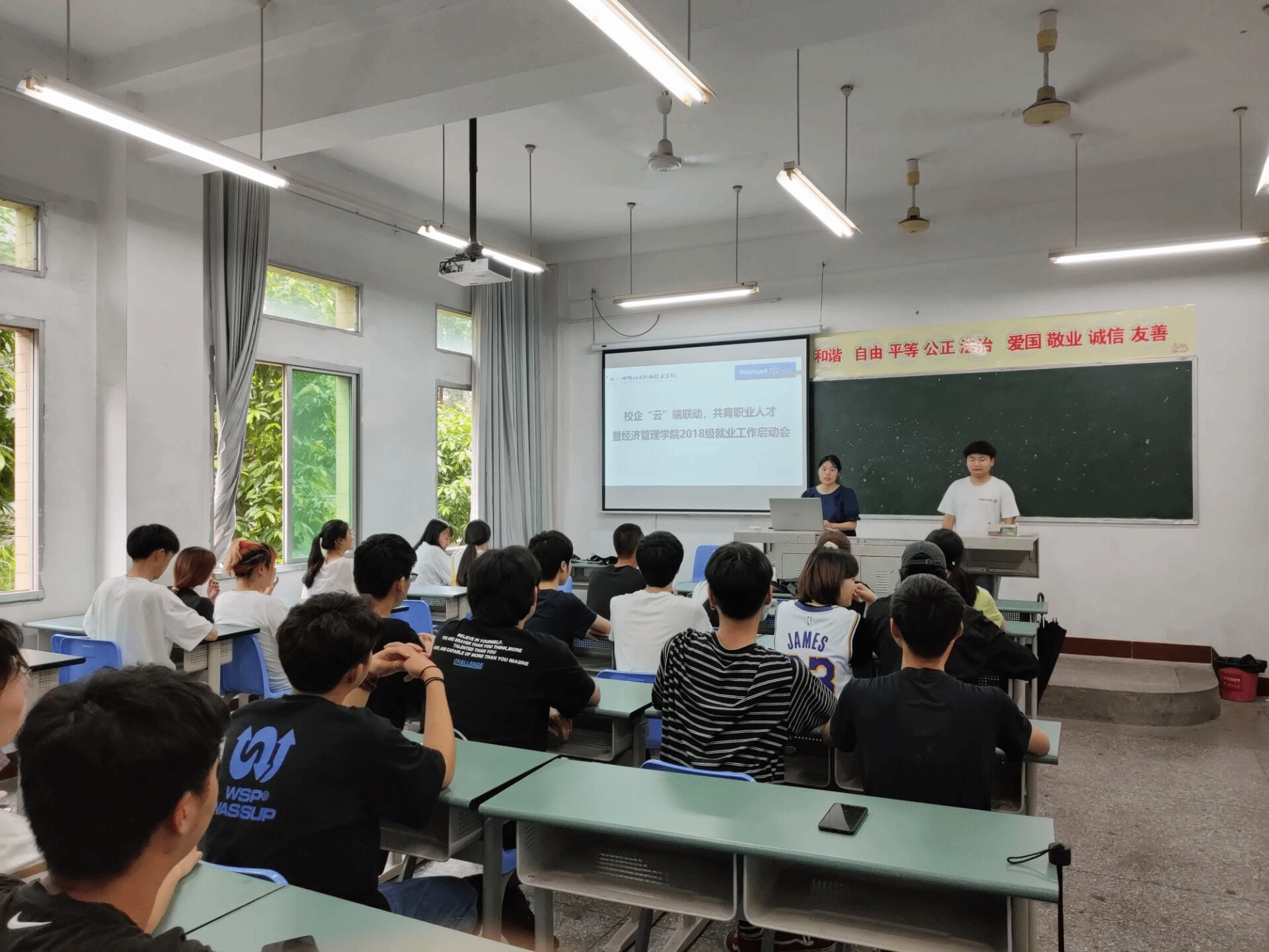 为了推进校企“云”端联动,共育职业人才,帮助学生了解疫情后的就业市场,对未来的就业有一个清醒的认识,2020年7月1日,经济管理学院联合沃尔玛中国四川区通过腾讯会议开展校企“云”端联动,共育职业人才暨经济管理学院2018级就业工作启动会。沃尔玛中国四川区自贡人力资源部经理倪壤女士和经济管理学院王兴莲老师共同主持了本次会议,经济管理学院专业教师、沃尔玛中国四川区宜宾、荣县人力资源部经理以及18级市场营销、物流管理、电子商务等专业同学在线上参加了本次会议。