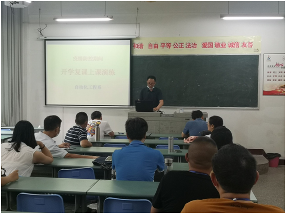 为进一步加强疫情防控,提高教职工疫情防控意识和应急处置能力,确保开学复课正常工作秩序,自动化工程系组织全体教师、辅导员于5月20日下午14:40分在综A401教室召开开学复课及疫情防控工作会议,并开展了疫情防控应急演练。