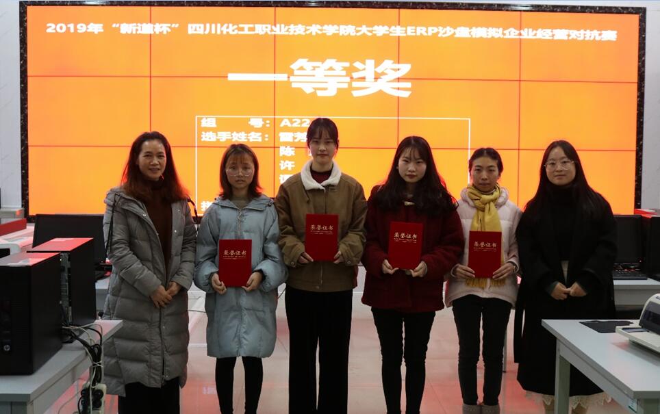 为深入贯彻落实党的十九大提出的建设“知识型、技能型、创新型”劳动者大军,弘扬劳模精神和工匠精神,提高学生实践动手能力,训练更高、更强、更快的专业本领,增强就业竞争力,2019年12月21日,由共青团四川化工职业技术学院委员会主办、经济管理系承办、成都领源教育科技有限公司协办的“2019年新道杯四川化工职业技术学院大学生ERP沙盘模拟企业经营对抗赛”在我院东校区经济管理系实训中心隆重举行。成都领源教育科技有限公司代表王定靖、经济管理系党总支副书记张晋、副主任马小洪等领导出席了颁奖典礼。