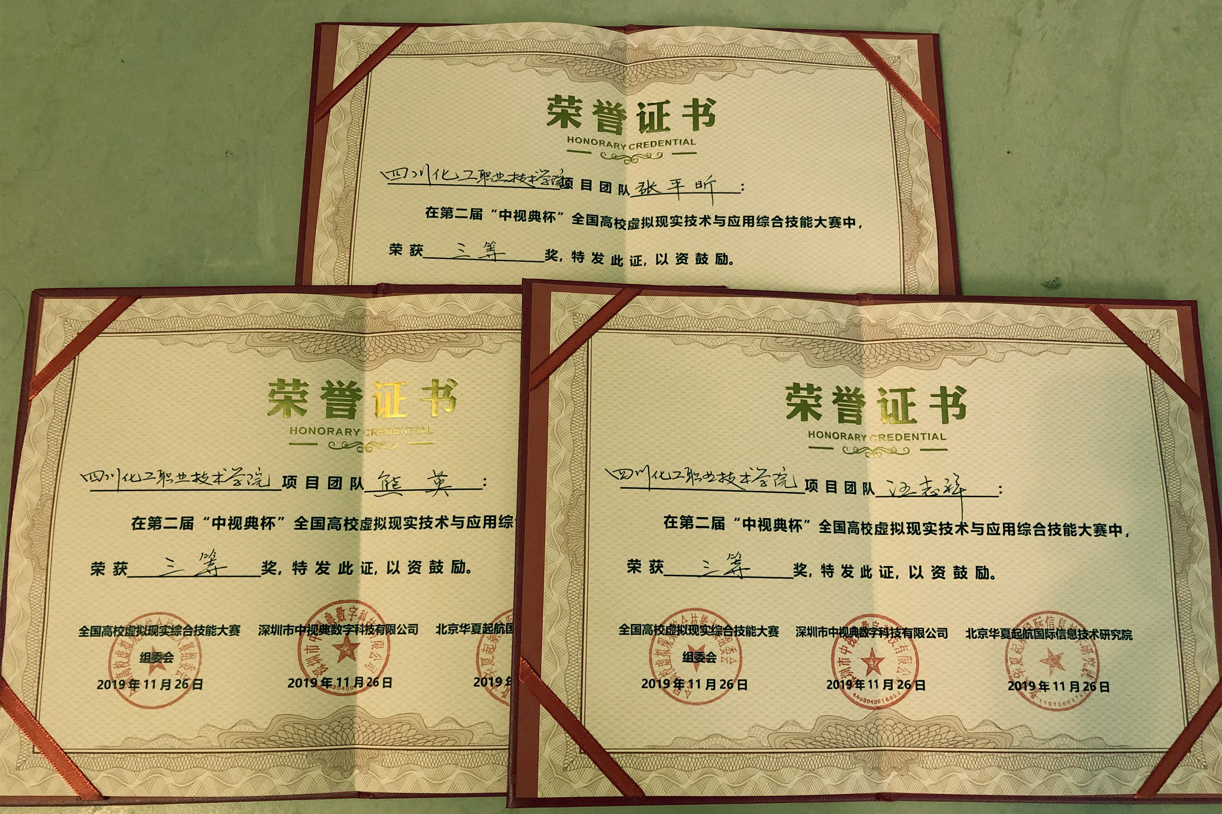 2019年11月22日——27日,由全国高校虚拟现实综合技能大赛组委会、中国虚拟现实与可视化产业技术创新战略联盟、中国电子质量管理协会、京津冀虚拟现实协同创新研究院、北京华夏启航国际信息技术研究院等单位,联合深圳市中视典数字科技有限公司等共同举办的全国高校虚拟现实技术与应用师资综合技能大赛在深圳举行。我院信息工程系虚拟现实应用技术专业汪志祥、张平昕、熊英三名教师参加了本次比赛并获得三等奖。