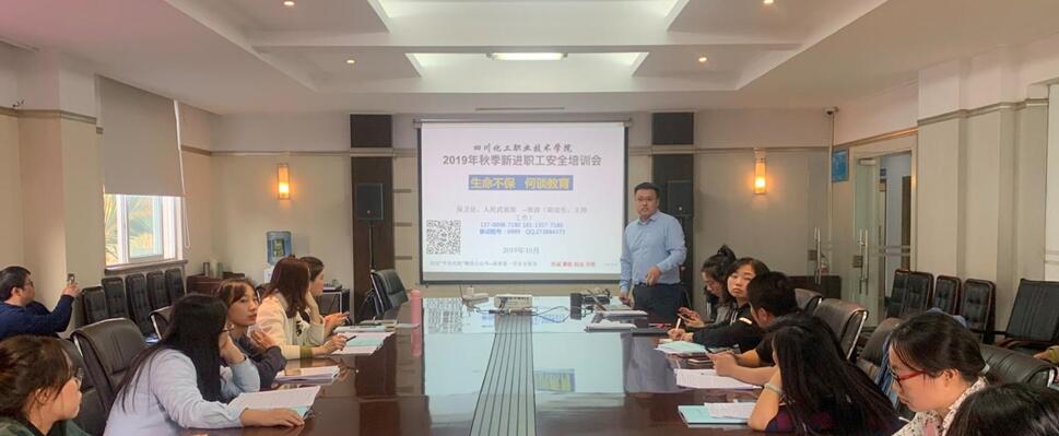 10月30 日下午17时在行政楼三楼会议室,保卫处组织对全体2019年新进职工开展了安全培训和消防专题培训。现场发放了《学院应急预案》、《安全制度汇编》、《实验室安全手册》、《岗位安全生产责任告知书》等资料,就学院安全总体情况介绍、突发事件处置、安全管理与业务培训、消防安全进行了培训。